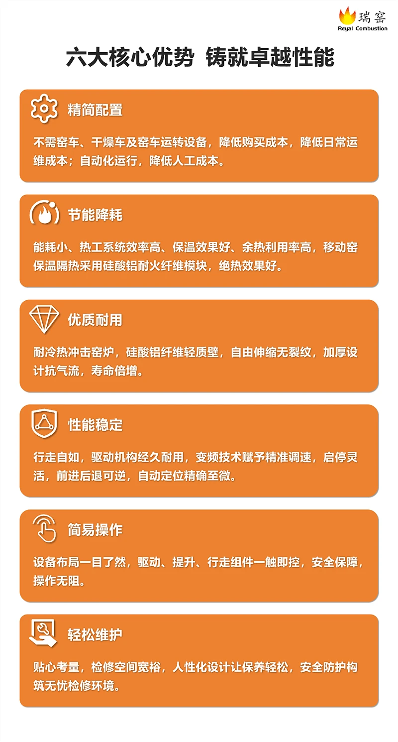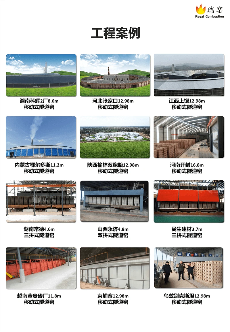 移动式隧道窑为新型全自动红砖烧结窑炉,瑞窑提供砖厂整体承建,从整个厂区布局设计,原材料到最终成本采用全自动生产方案,日产量最高可达60万标准砖,原材料可采用大宗固废,配备环保设备,实现红砖生产环保无污染。
