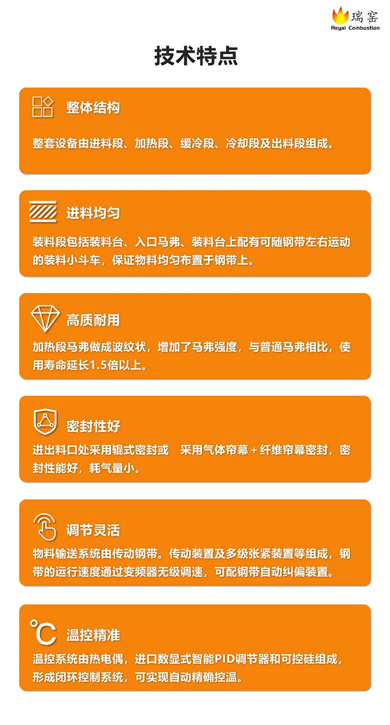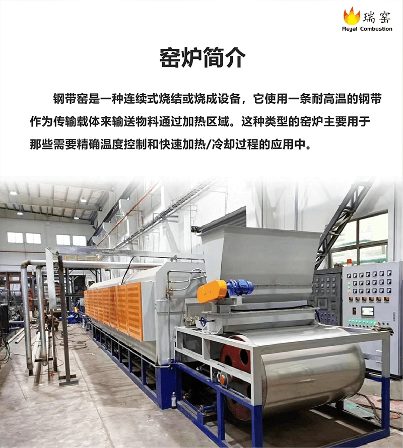 钢带窑是一种利用钢带作为承载工具,将物料连续通过窑炉进行加热处理的设备。它广泛应用于多个行业,特别是在非金属材料的焙烧、合成、分解及排胶等方面。