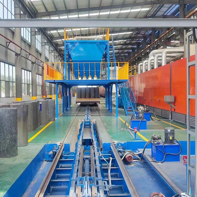 装载:未烧制的物料被放置在窑车上。进料:窑车通过轨道送入隧道的一端。