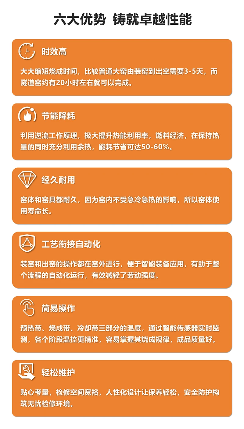 工业隧道窑是一种连续式生产的焙烧设备,采用钢结构砌筑式设计,具有产量高,工艺衔接自动化,操作简单等特点,在碳纤维、陶瓷粉末、金属粉末焙烧、新能源材料碳化等生产中广泛应用。